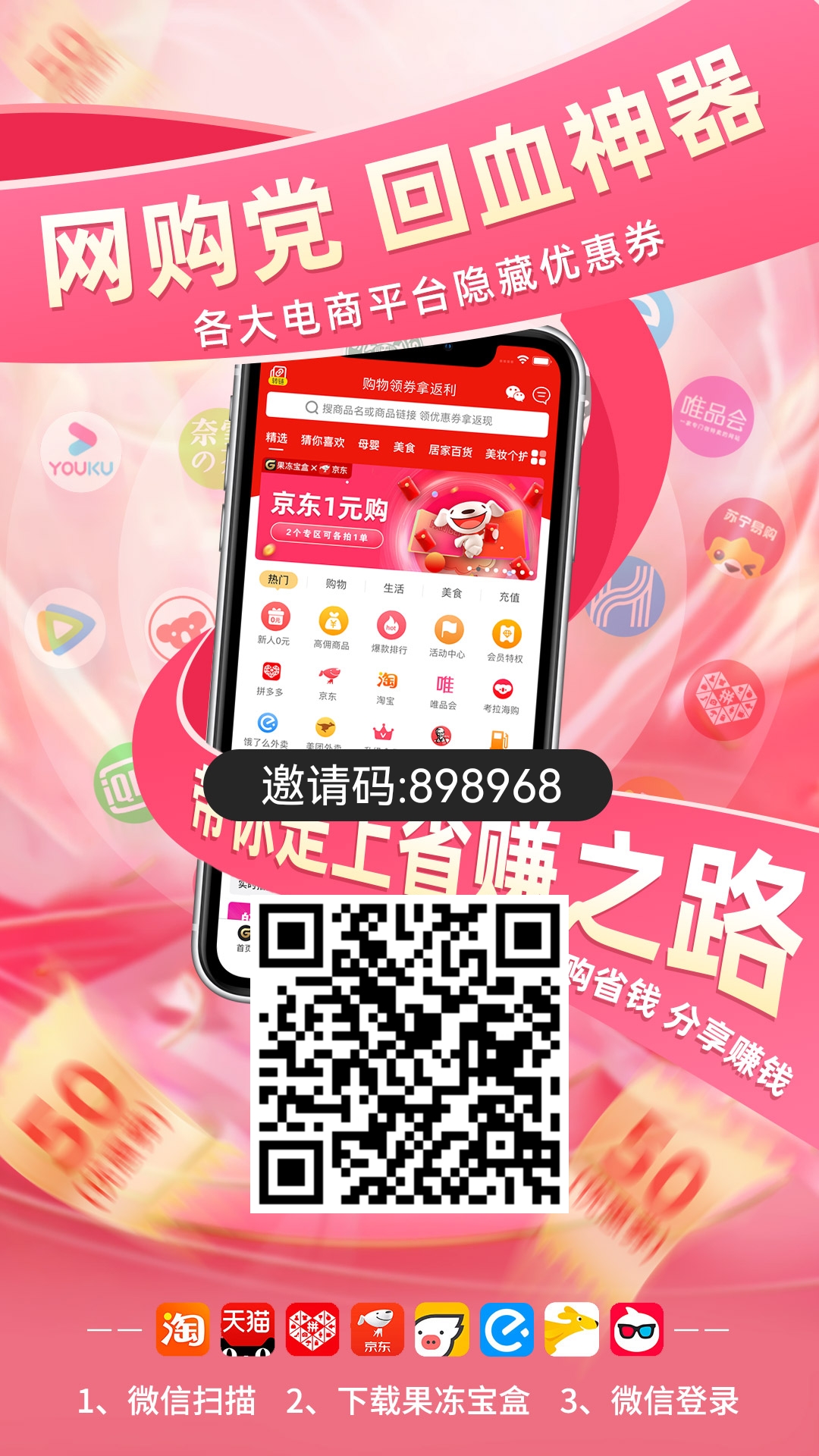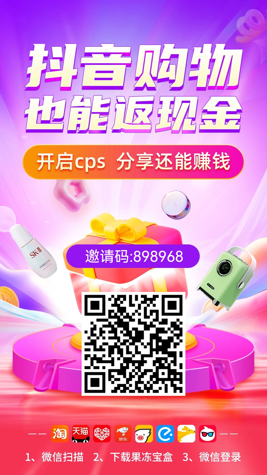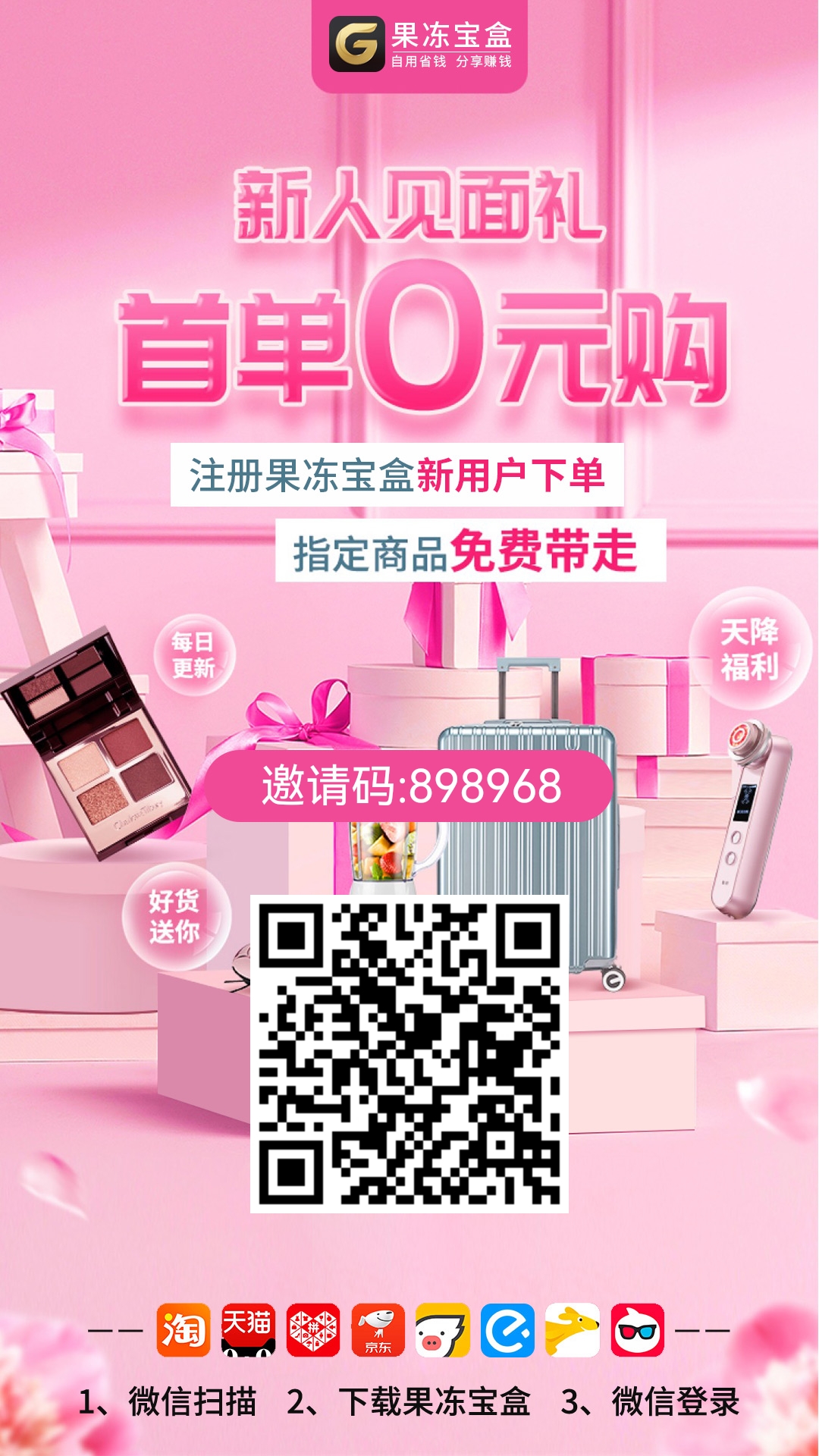返佣平台“果冻宝盒”各大手机应用市场搜索下载,或者保存下面图片注册下载!新用户有福利品